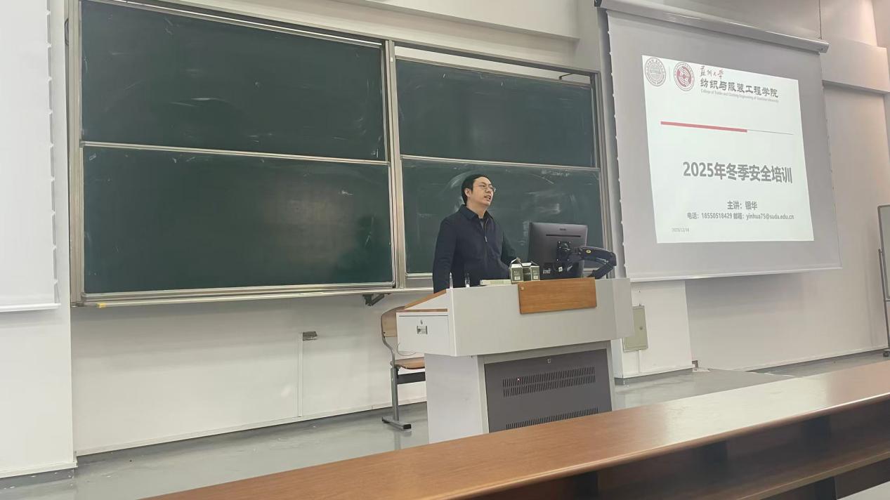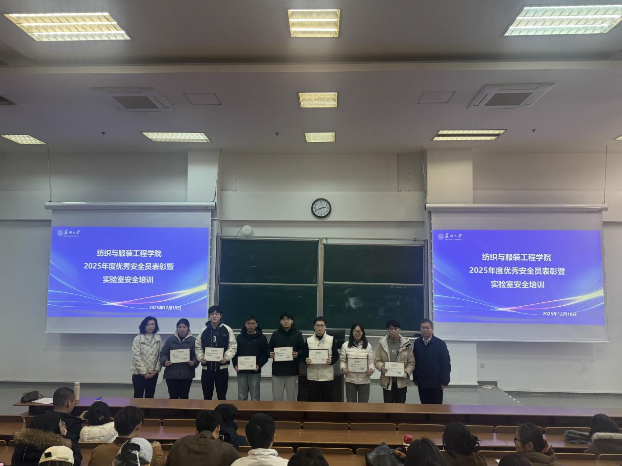为进一步筑牢实验室安全防线,强化师生安全责任意识,充分发挥安全员在实验室安全管理中的关键作用,12月18日学院开展2025年度优秀安全员表彰暨实验室安全培训工作。学院党委书记肖甫青、学院专职安全员银华、学院辅导员李雪、研究生安全员和即将进入实验室的研一学生和本科生参加培训,培训由现代丝绸国家工程实验室副主任刘欣亮主持。