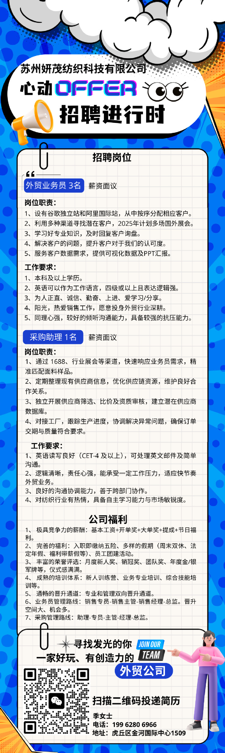 【招聘信息】苏州妍茂纺织科技有限公司(2025年4月11日春季专场招聘会)