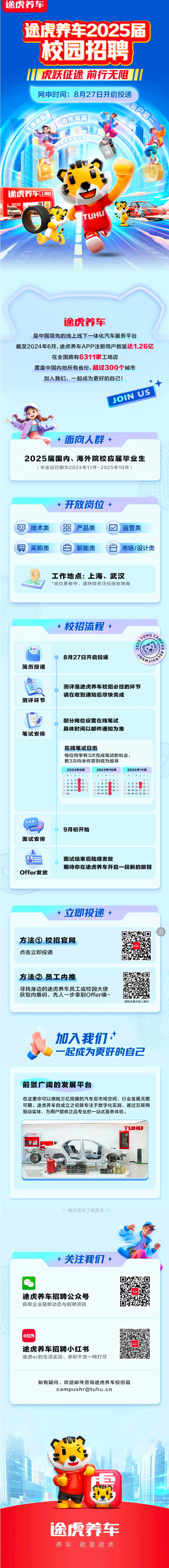 【招聘信息】途虎养车2025届秋季校园招聘正式启动