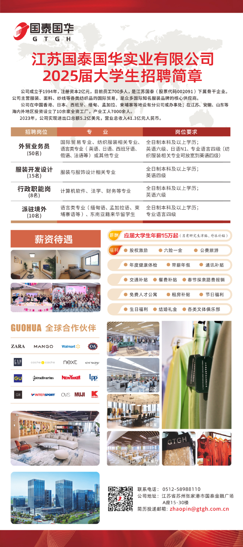 【专场招聘】江苏国泰国华实业有限公司2025届秋季招聘启动仪式暨专场招聘会