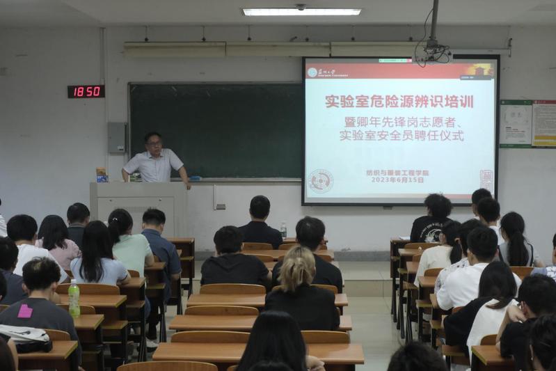 2023年6月16日,纺织与服装工程学院实验室危险源辨识培训暨卿年先锋岗志愿者、实验室安全员聘任仪式在独墅湖校区301-1101召开。学院党委书记张克勤肖甫青、学院院长张克勤、学院副院长严俊出席会议,学院总实验室相关老师及卿年先锋岗志愿者、全体研究生安全员参加会议。会议由现代丝绸国家工程实验室副主任刘欣亮主持。