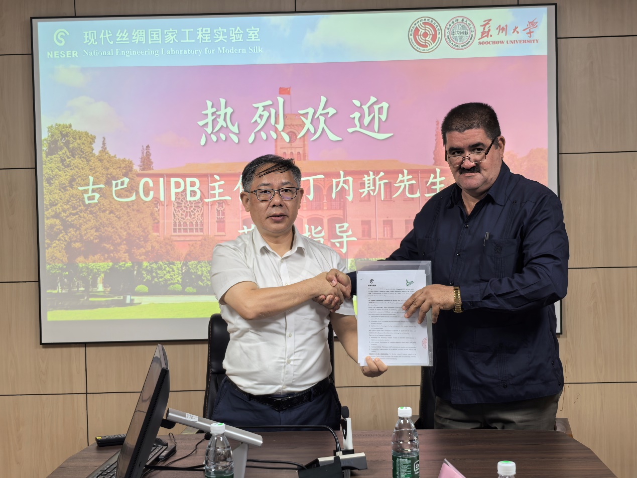 此次推进会中,苏州大学现代丝绸国家工程实验室与古巴蛋白植物和生物产品研究中心签署了战略合作协议,为中古两国在蚕桑科技领域的深度合作开辟了新空间,也为推动丝绸产业走向国际化发展提供了有力支撑。