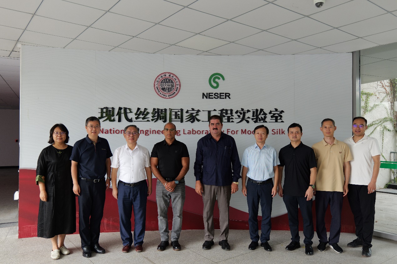 马丁内斯一行参观了现代丝绸国家工程实验室成果展厅,张克勤介绍了学院及现代丝绸国家工程实验室的建设与发展情况。马丁内斯介绍了CIPB及蚕桑研究进展,刘利回顾总结了中古蚕桑科技合作项目情况。三方围绕蚕桑科技创新、合作机制及未来发展展开了深入交流和务实探讨。