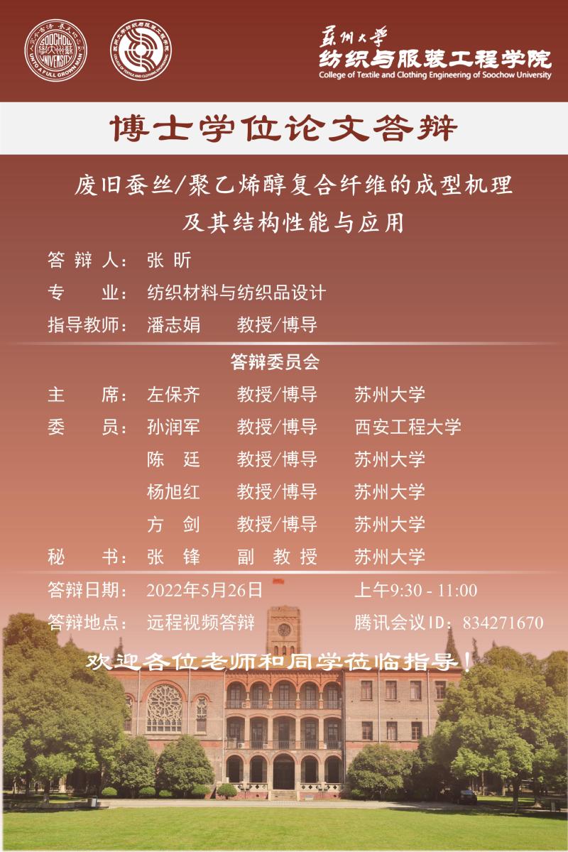 纺织与服装工程学院张昕博士学位论文答辩公告