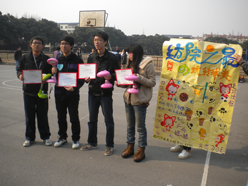 为了丰富同学们的校园生活,活跃校园文化,锻炼同学们的体力、脑力,增强同学之间的友谊,由纺织与服装工程学院团委主办、纺织与服装工程学院科协承办的“纺院之最”于2012年3月10日13:50在篮球场火热举办。
