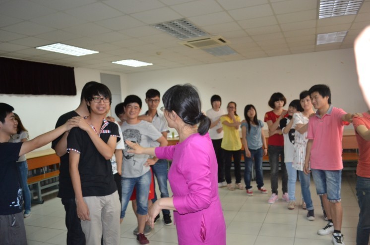 活动伊始,王老师让我们做了“请帮助”的热身游戏,分别以“迷路、借钱、考试借笔记”三个情景让同学们选择寻找帮助的人,把手塔在对方的肩膀上,这就形成了错综复杂的线路,每个同学对自己的选择进行说明。有几个是最受欢迎的人,一般都是人际关系较好待人真诚的同学。接着是我们从小就玩的水果蹲游戏,根据按序报数分为4组,各组都有自己的战术,在一片片整齐的声音中释放着心中的压抑。