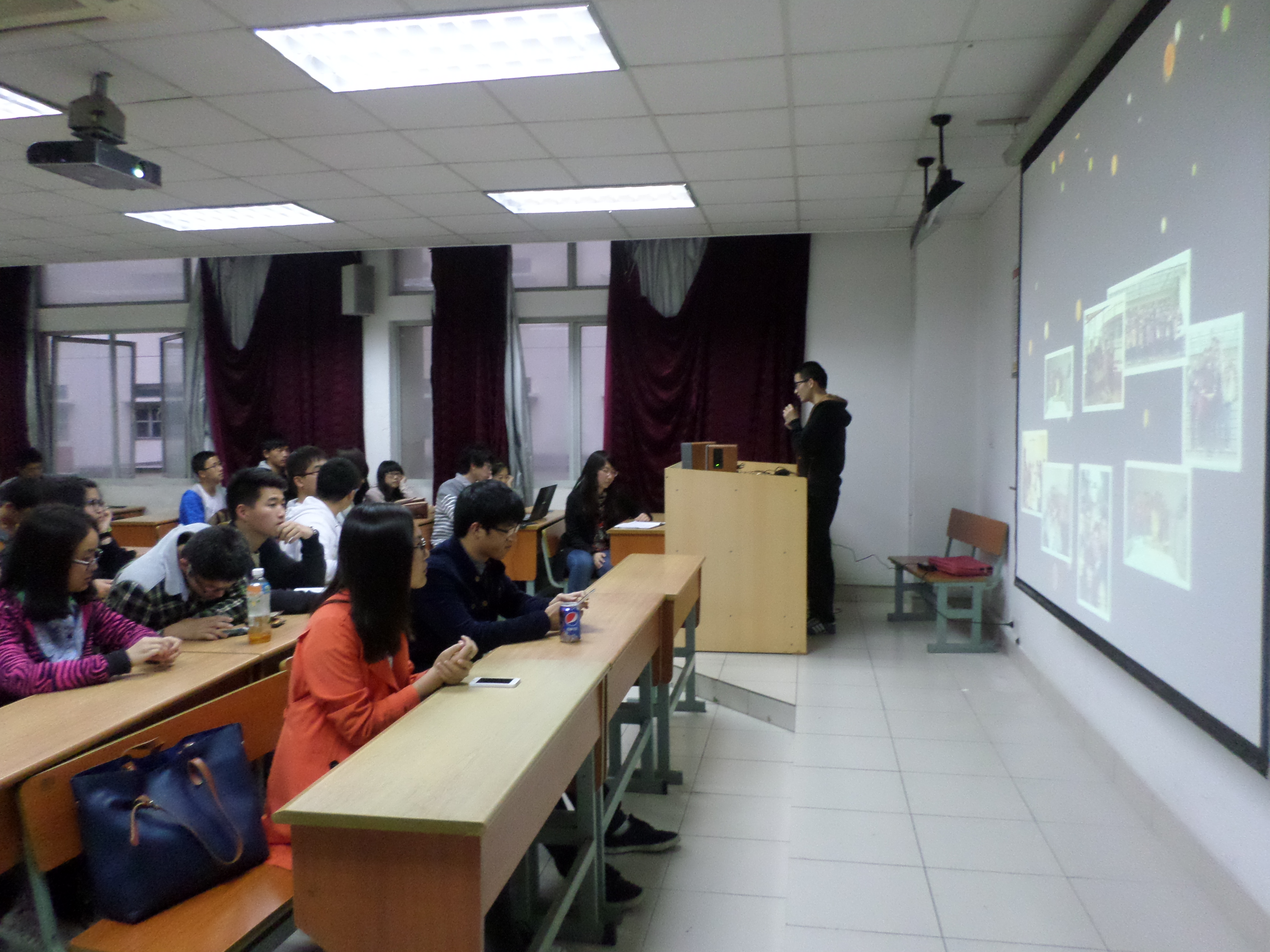 在薛主席的简短发言后,大会进入第一部分,户外拓展活动总结环节。参加户外拓展的各部门先后派出代表上台,结合精心制作的PPT进行了精彩的汇报。第一个上台的是活力四射的体育部,他们的汇报奔放豪迈、别出心裁,引得台下阵阵掌声。随后其他部门也都以自己独特的方式进行了总结。从大家的总结中可以看出,户外拓展活动给大家留下的记忆是深刻的,从采访路人到采访经理,从调查报告到千字论文,免费参观苏州丝绸博物馆与免费体验陶瓷工艺和焙制饼干,找十对夫妻倾听真情告白与询问十个老年人的情感生活。每一项活动既贴近生活又别出心裁,每一个任务既要靠大家齐心协力又要个人献计献策。过程中有失落也有喜悦,有成功也有失败,有开心也有悲伤。但,这才是生活的体验,走出校园,品味社会,锻炼自我,提升自我。