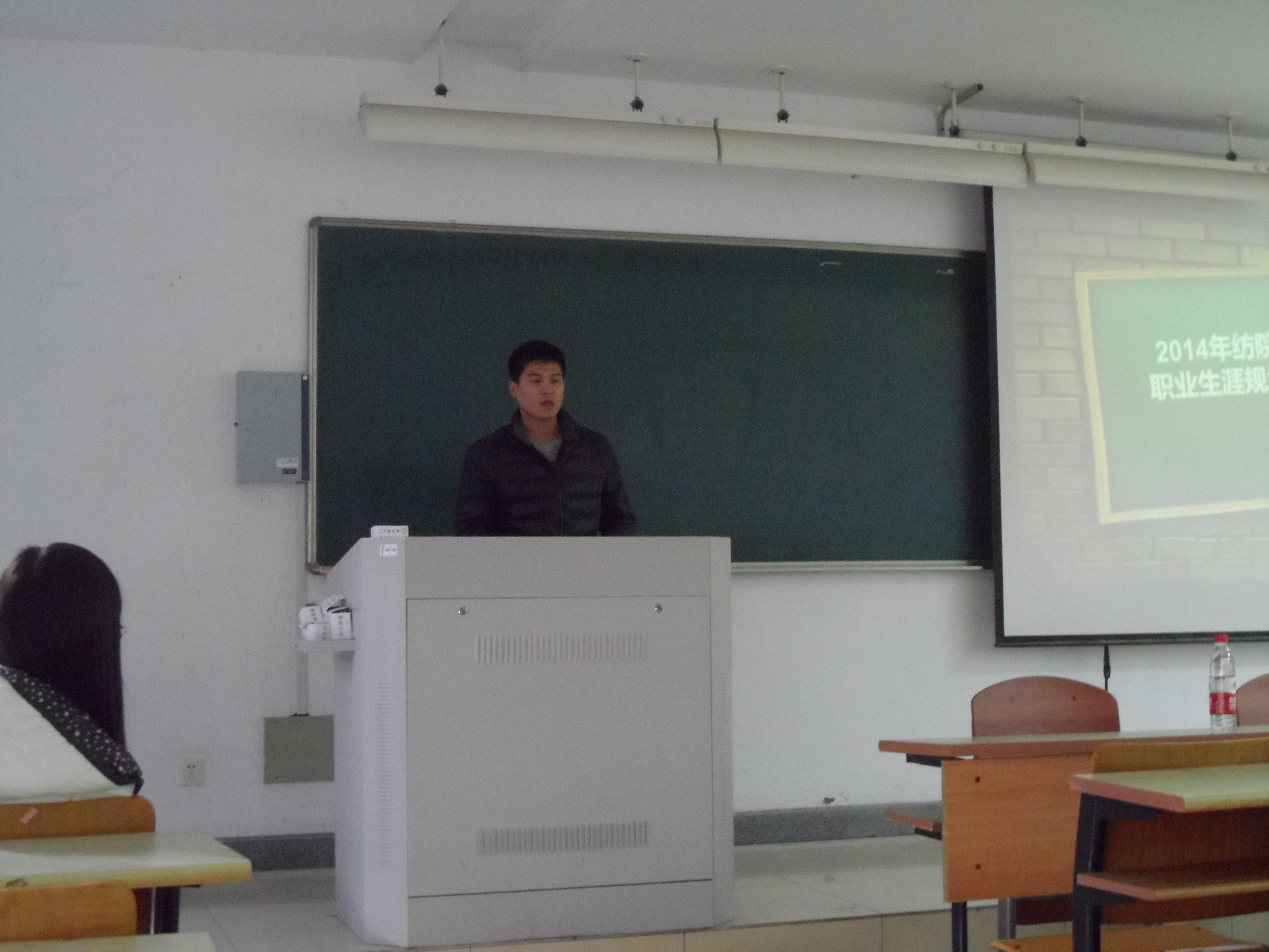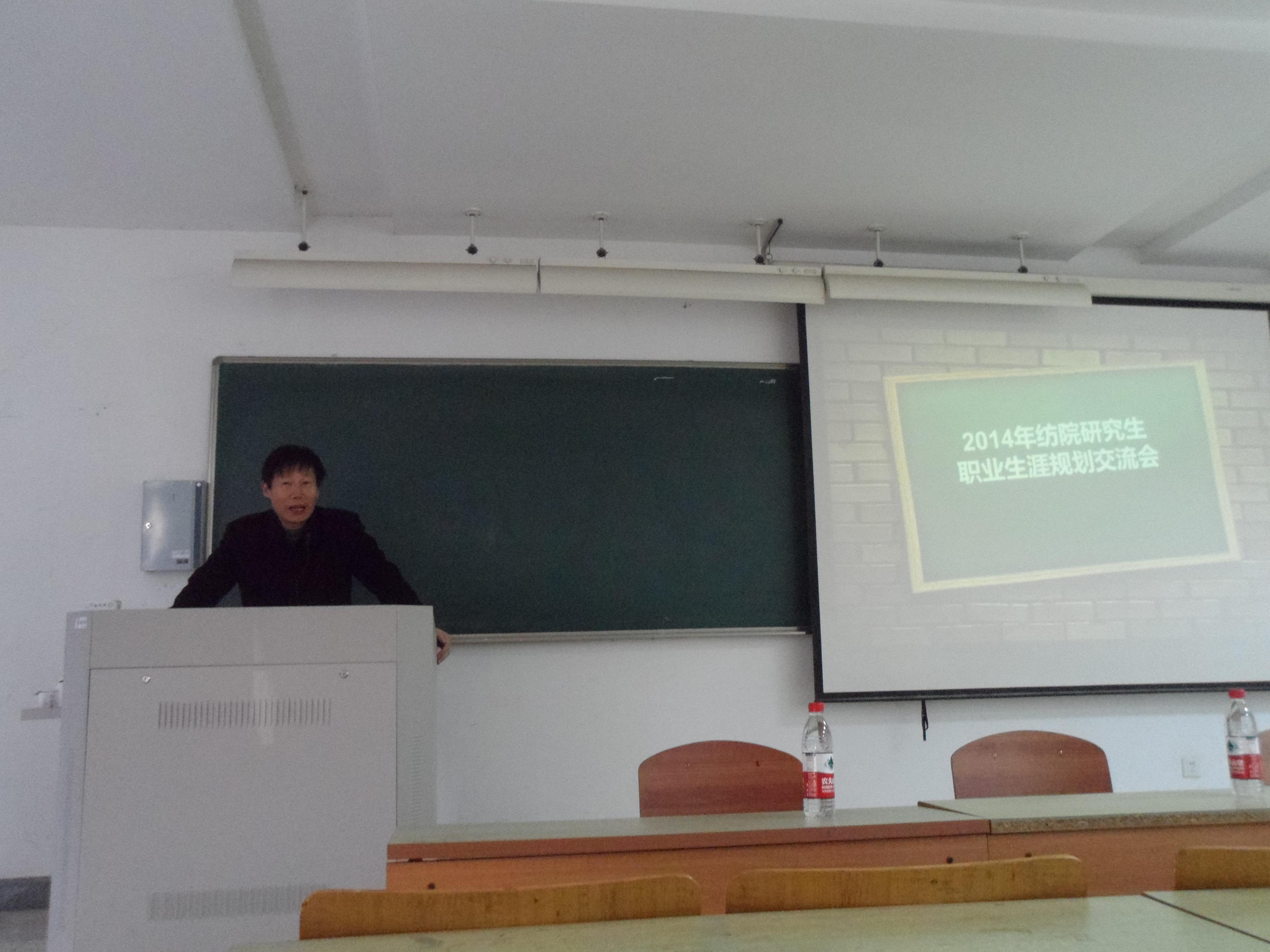 2014年12月14日,由纺织与服装工程学院研究生会主办的研究生职业生涯规划交流会在独墅湖校区301#1109举行,并得到很好的效果。参加该交流会的有江苏工程职业技术学院的老师马新成;苏大研究生毕业,现任职苏州楚星时尚纺织集团有限公司的李帅师兄;潘志娟老师的在读博士王哲师兄以及全体14级纺院的研究生。他们主要介绍了一下各自对于学习和生活的一些感悟。这次经验交流会的目的是让研一新生更快的进入研究生的学习生活之中,少一些迷茫,疑惑。