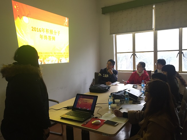 2016年入党积极分子年终答辩会于12月20日下午在丝韵楼会议室举行。本次答辩会共有40余位入党积极分子参加,评议小组由分党校负责老师季彦斐,学生支部副书记组成。