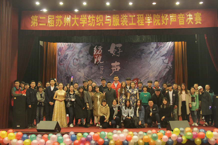 2017年3月19日晚6点,由苏州大学纺织与服装工程学院团委主办,纺院学生会承办的第二届纺院好声音歌手比赛决赛于本部敬贤堂正式拉开帷幕。本次到场的嘉宾及评委有党委副书记、副院长潘爱华老师,勤工办季彦斐老师,团委书记刘海老师,团委老师赵伟,纺院总实验室魏老师,2014年中国好声音江苏省南方区亚军、苏州市开星艺术培训中心老师韩其强,音乐爱好者社团社长、音乐学院学生会社团部部长陈晓东以及纺院学生会主席李梓润。学习部葛灿和丝韵文娱曹雪纯担任此次比赛的主持人。