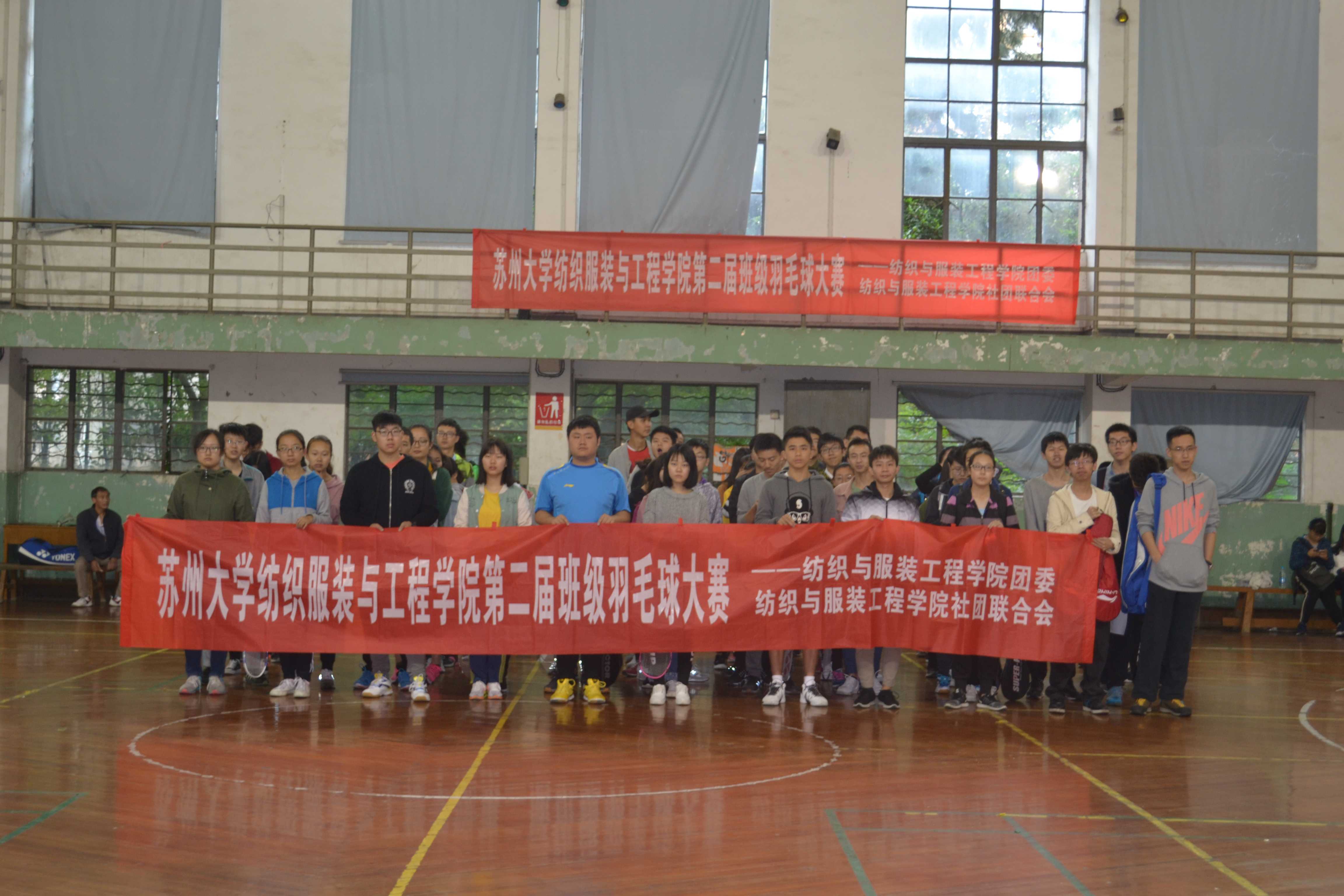 2017年10月15日上午8时,随着一声哨响,苏州大学纺织与服装工程学院“飞扬羽球,激昂青春”第二届羽毛球班级联赛在苏大北校区体育馆正式拉开了帷幕。纺织与服装工程学院团委副书记蒋闰蕾老师,学院2016级辅导员赵伟老师,学院2017级辅导员孙晓旭老师应邀出席活动,学院社团联合会主席汤健主持本次比赛。