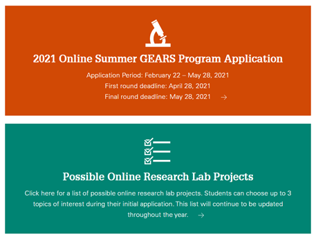 (1)申请夏季网络科研项目的同学请于2021年5月28日前在北卡州立大学项目网站上报名,网址:https://gti.ncsu.edu/gears/。