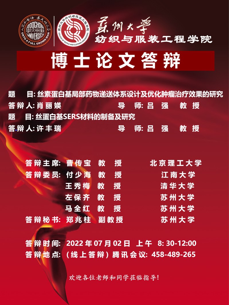 纺织与服装工程学院肖丽瑛、许丰瑞博士学位论文答辩公告