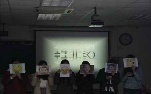 第四个环节为每支队伍选出一位选手,抽取一种类型的N次贴,由主持人将这种类型的N次贴贴在这位选手身上。选手要将自己身上的N次贴甩下(不能用手),其他选手要把这位选手甩下来的N次贴按照它的顺序排好。又是一阵激烈的比拼,选手用力的甩着身体,尽可能快的将N次贴甩开,其他同学则发挥脑力排好顺序。在四轮环节结束后,每个班级所获得的线索数量各不相同,这也决定着最终那个班级更有几率找到大恶魔。桌子上放着六个盒子,各班根据得到的线索进行推理猜测,按照得分顺序依次选择盒子。可在此时,现场却发生了大逆转。原本第五的16纺一却在分数,线索远远落后于其他班级的情况下,却幸运的拿到了装有大恶魔的盒子,使得全场的气氛达到了最高潮。最终16纺1取得第一名,14轻化取得第二名,16纺织和14非织取得第三名。活动最后,各个班级的参赛选手在讲台进行拍照留念,班级风采大赛圆满结束。希望各个班级通过班级风采大赛,能够更加的热爱班级,增强班级的凝聚力。