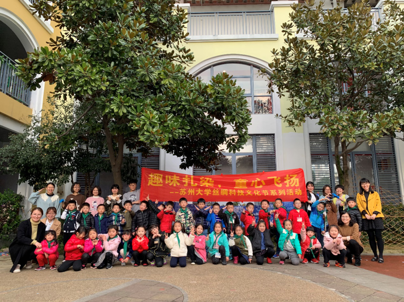 “五彩扎染,童心飞扬”活动系苏州大学丝绸科技文化节系列活动子活动,由纺织与服装工程学院青年志愿者协会承办,此活动的开展受到了学院上下高度重视,学院青年志愿者们纷纷加入丝绸文化传播行动的队伍中来。丝绸文化与丝绸精神的探寻,传承与弘扬是每一位纺院学子的责任与使命。新时代的工科生,应努力让现代科技与传统技艺碰撞出新的活力,也应更加坚定地学好专业特长,投身丝绸产业、发扬丝绸文化。