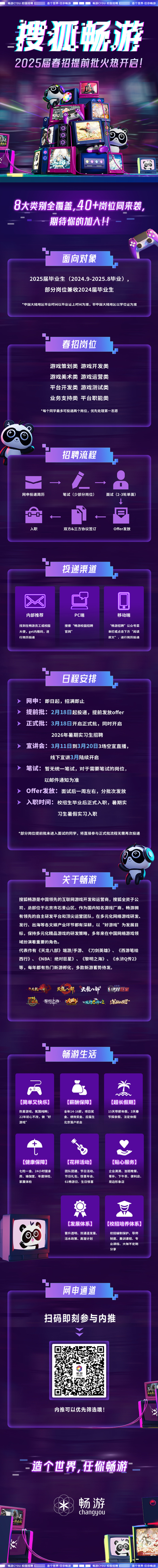 【招聘信息】搜狐畅游2025届春招提前批全面启动