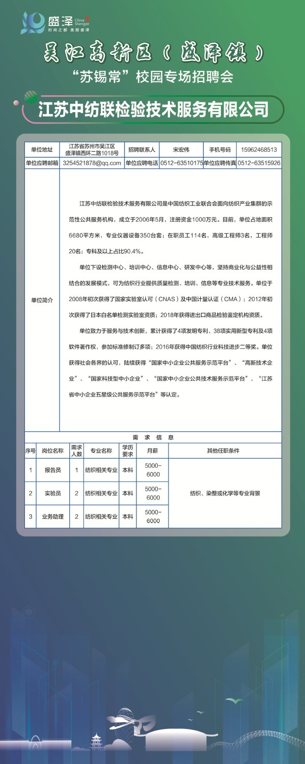 【招聘信息】江苏中纺联检验技术服务有限公司